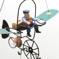 Ernest Archdeacon en 1905 diseña un planeador sobre una bicicleta, basado en los principios aerodinámicos Chinos; estos usaban una especie de alas para mejorar la estabilidad de las bicicletas. Su invento sirvió de base para el monoplaneador de Montgomery. |