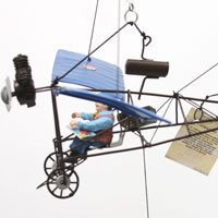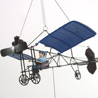 Se piloteaba como un planeador motorizado, construido con un armazón en bambú, sus alas median 5 metros, y fue el primer aparato en su genero.
