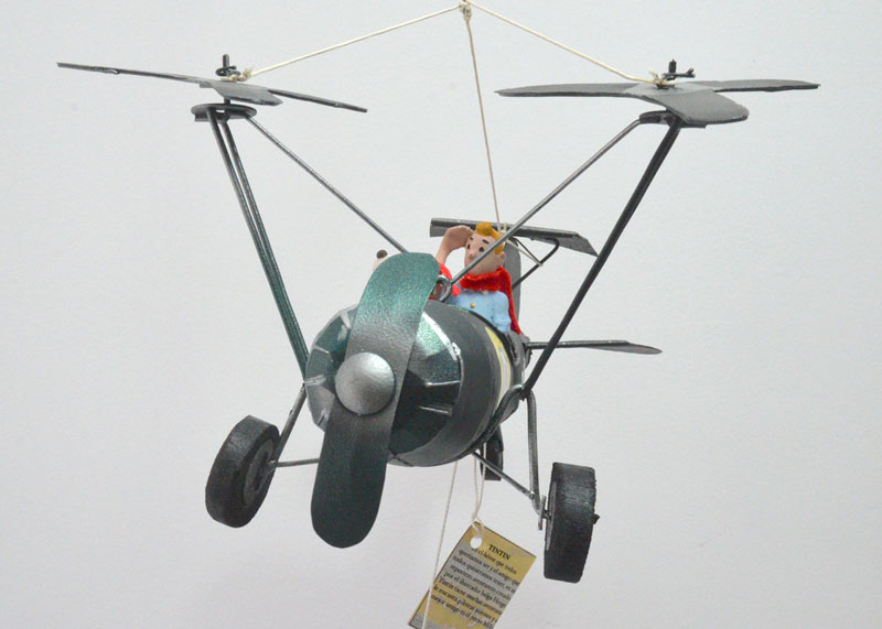 El Helicóptero Doble Hélice El Principito es una pieza que rinde homenaje al espíritu curioso y sensible de ese niño que viaja entre mundos buscando amistad, preguntas y respuestas. Con su capa al viento y su inseparable compañero, parece listo para despegar hacia un nuevo planeta. Su estructura de doble hélice y estilo clásico evocan la aviación antigua, mientras que su diseño artesanal tipo cartoon aporta calidez, color y personalidad. El verde profundo del fuselaje y los detalles cuidadosamente elaborados hacen de este móvil decorativo una pieza única, llena de carácter y poesía.