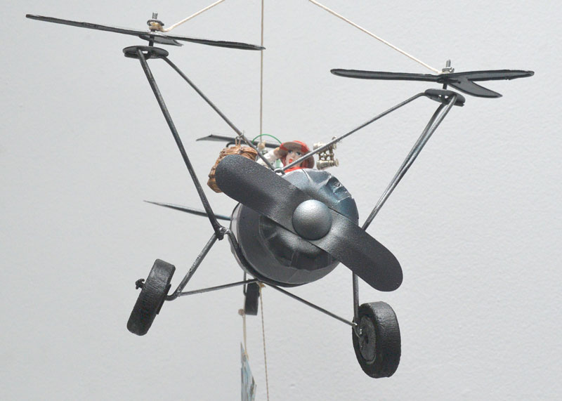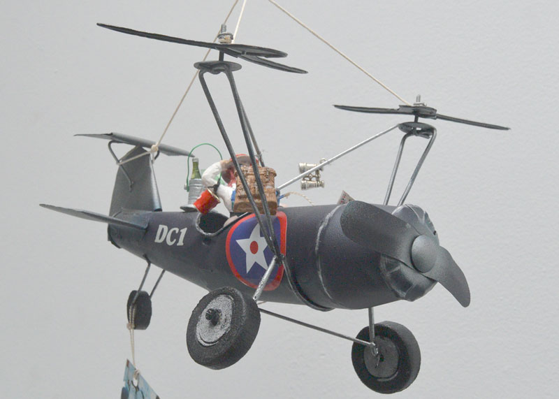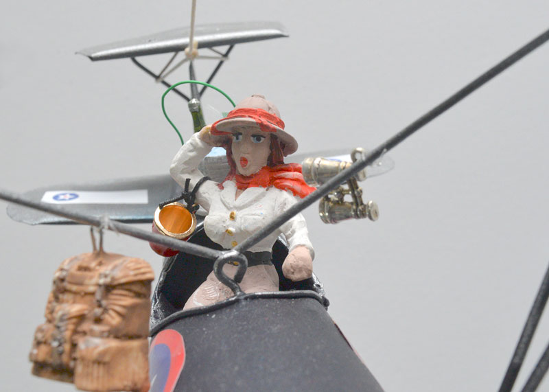 Con sombrero firme, bufanda al viento y mirada enfocada en el horizonte, esta figura encarna el espíritu de las primeras mujeres que desafiaron los límites del aire. Su presencia transmite carácter, valentía y esa mezcla perfecta entre aventura y estilo clásico. La estructura de doble hélice y el diseño inspirado en la aviación antigua evocan los tiempos en que volar era un acto de coraje y descubrimiento. Cada detalle —desde el equipaje cuidadosamente modelado hasta los pequeños accesorios— ha sido trabajado a mano, dando como resultado una pieza llena de personalidad y movimiento.