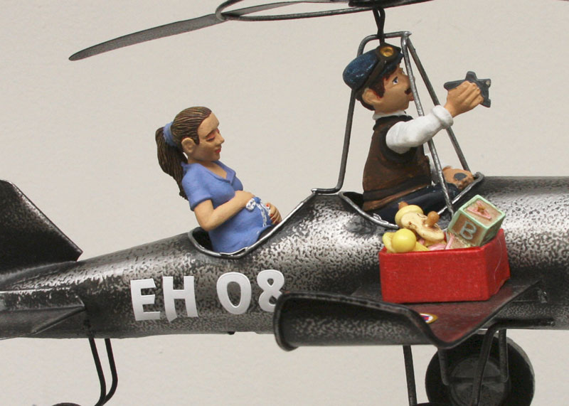 En un vuelo inesperado de la vida cotidiana, una futura mamá con la barriguita redonda y llena de promesas se subió al asiento del copiloto, mientras un pequeño piloto de gorra y bigote juguetón tomaba los mandos con ilusión. Juntos surcan el aire plateado del EH O8, rodeados de bloques de letras, plátanos de juguete y una estrellita que brilla como el primer sueño del bebé en camino. Con el rotor girando suave y el viento cantando nanas, este viaje captura la magia del embarazo: esa aventura llena de ternura, risas compartidas y la certeza de que pronto aterrizarán tres en casa, listos para despegar hacia miles de nuevas historias. Un helicóptero que no solo vuela, sino que lleva en su cabina el latido emocionado de lo que está por nacer.