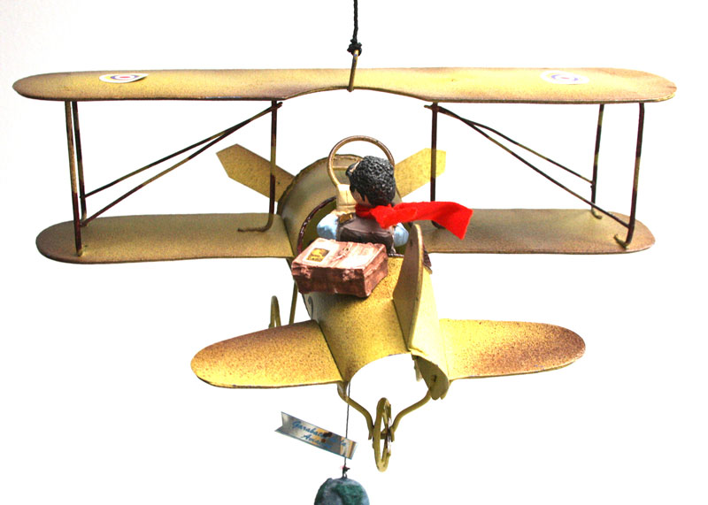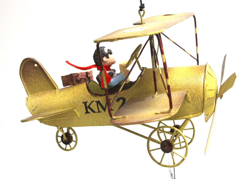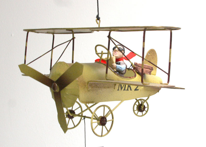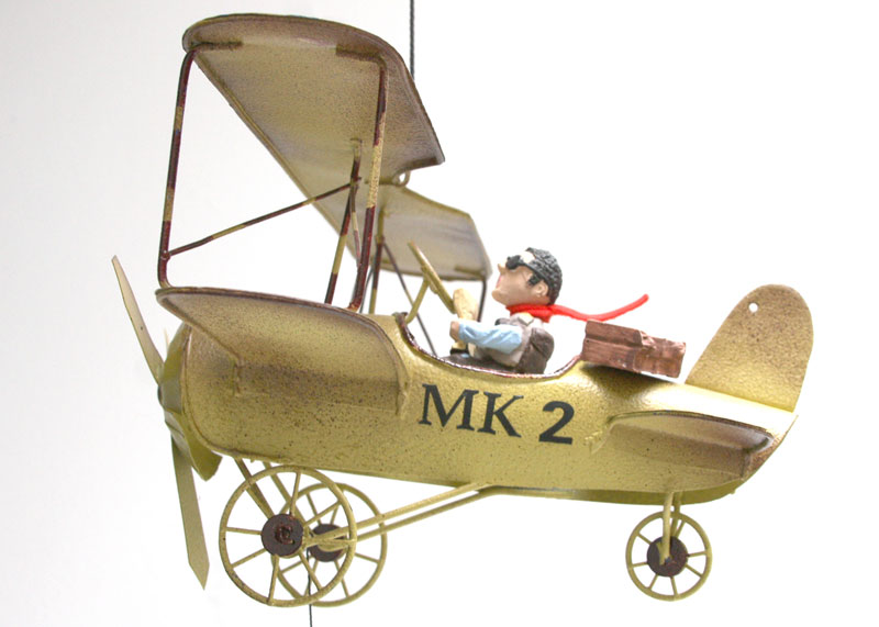 En un rincón soleado del mundo donde los mapas se doblan por el uso y las maletas nunca se vacían del todo, el Turista despega en su biplano dorado MK Z, con la misma emoción infantil que siente al abrir un guía de viajes nuevo. Con su bufanda roja ondeando como una bandera de “¡aquí estoy!”, gorra de piloto ladeada y una sonrisa permanente que dice “¡esto va a ser inolvidable!”, pilota esta reliquia voladora que parece salida de un catálogo de aventuras vintage. Lleva consigo una maleta maltrecha llena de souvenirs imposibles —un sombrero de paja de algún mercado lejano, una postal que nunca envió y un termo que aún guarda el café de la última parada—, y cada vuelo es una excursión aérea: baja a ras de nubes para fotografiar volcanes dormidos, hace escala en castillos de algodón y saluda a los pájaros como si fueran guías locales. Este turista eterno no busca destinos exclusivos ni fotos perfectas; colecciona momentos, risas con extraños y la certeza de que el mejor recuerdo siempre está en el próximo viraje. Mientras el motor zumba y el viento le despeina el bigote imaginario, recuerda que viajar no es llegar, sino dejarse llevar por el cielo con los ojos bien abiertos y el corazón listo para sorprenderse otra vez.